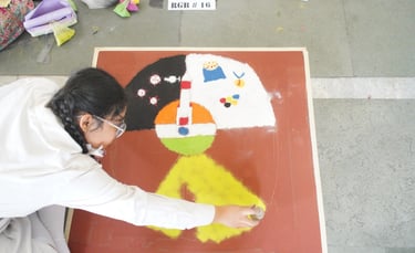 Vibrant Rangoli competition at Christ Church School ISC, showcasing student creativity.